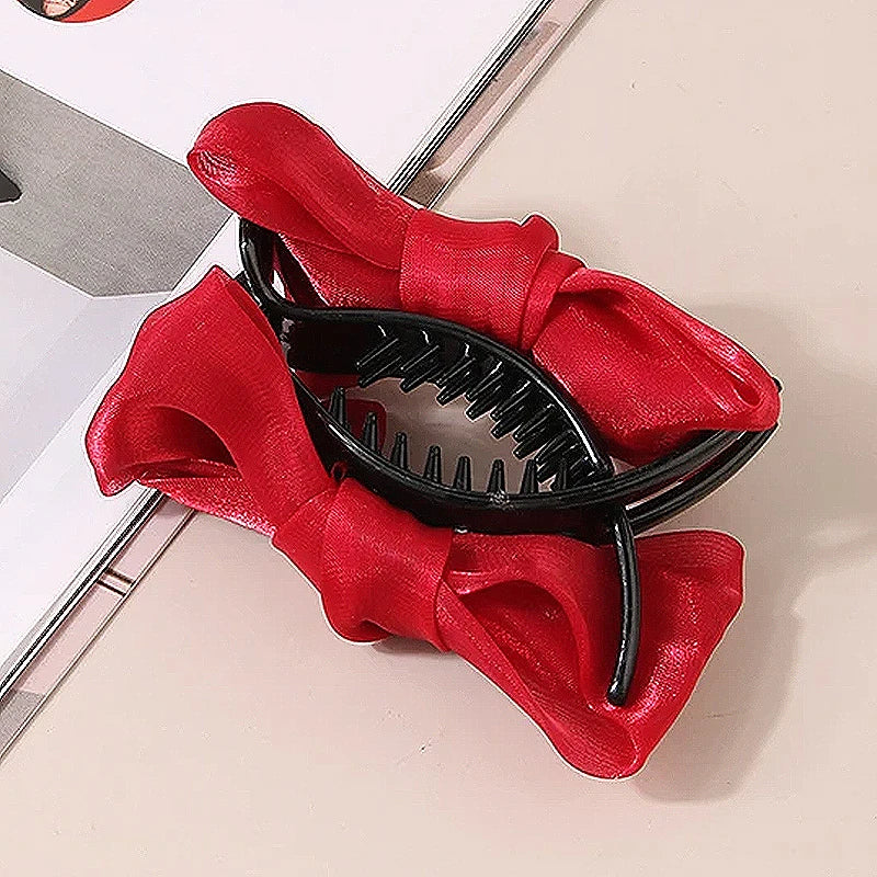 Large Fashion Satin Bow Headdress Internet Celebrity Catch Cross Hair Claw Hairpins Sweet Hair Accessories For Girls 12CM