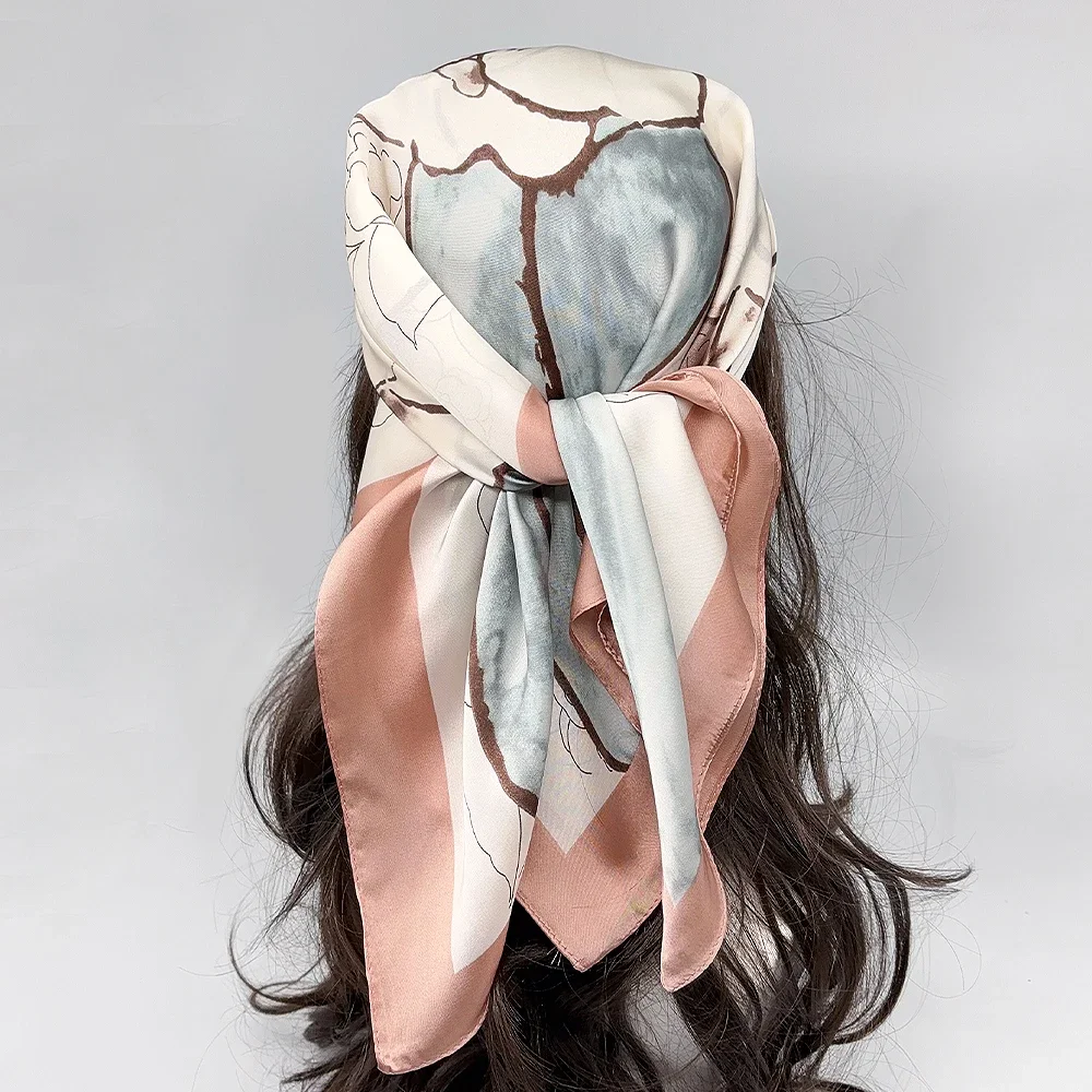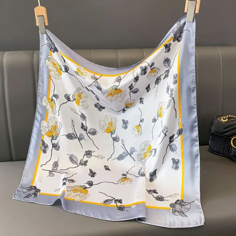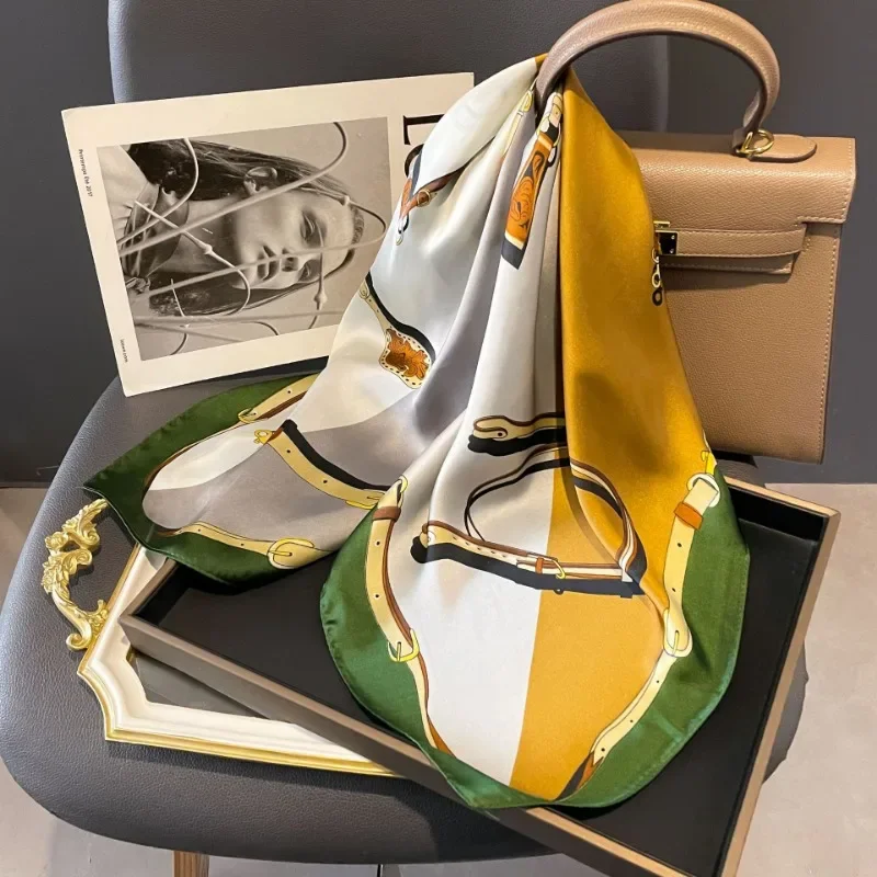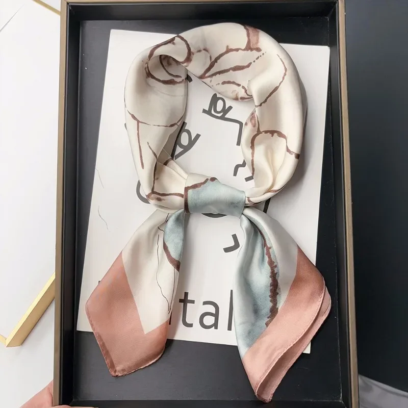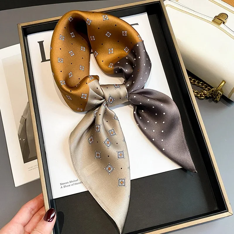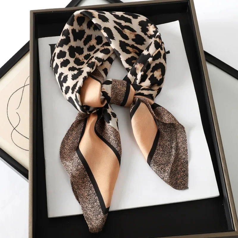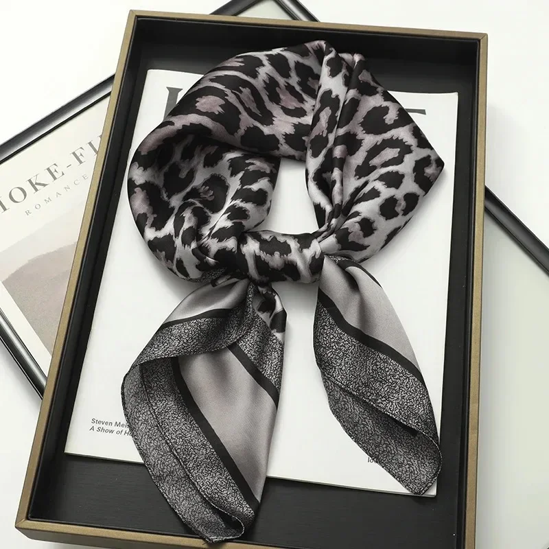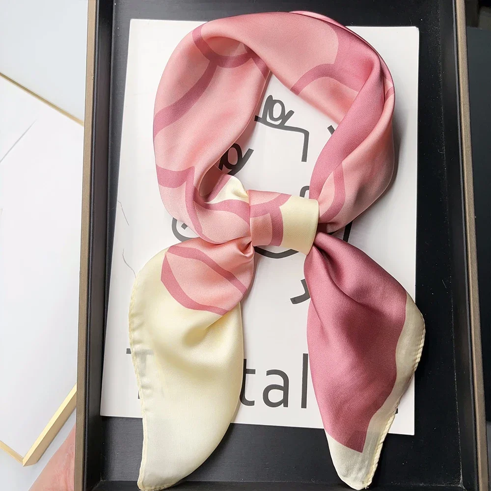 Luxury Brand 2024 Square Scarf Women Cat Neck Hair Tie Band Beach Hijab Kerchief Head Headbands Bandana Female Foulard 70cm