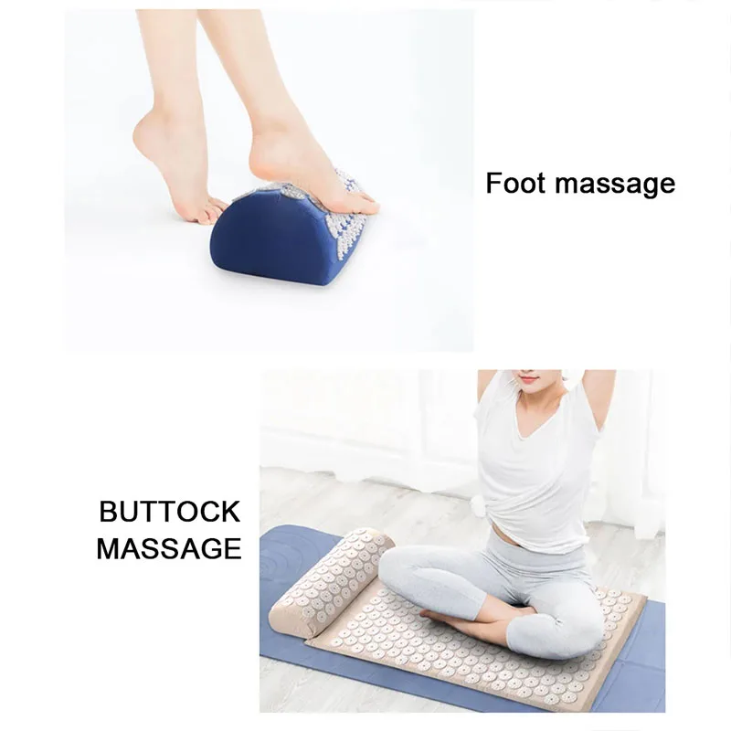 Acupressure mat is a perfect assistant for self-treatment. It works in a similar way as acupuncture by having your body release endorphins, which have the ability to produce analgesia and a feeling of well-being. Many people have different reactions to this, which may include: happiness, clearer mind, more energy, and relaxation. If regularly used for a long enough period of time the acupressure set may: -Increase energy level-Improve blood circulation-Decrease stress-Relieve neck and back pain-Reduce blood pressure-Alleviate headaches-Improve sleep .