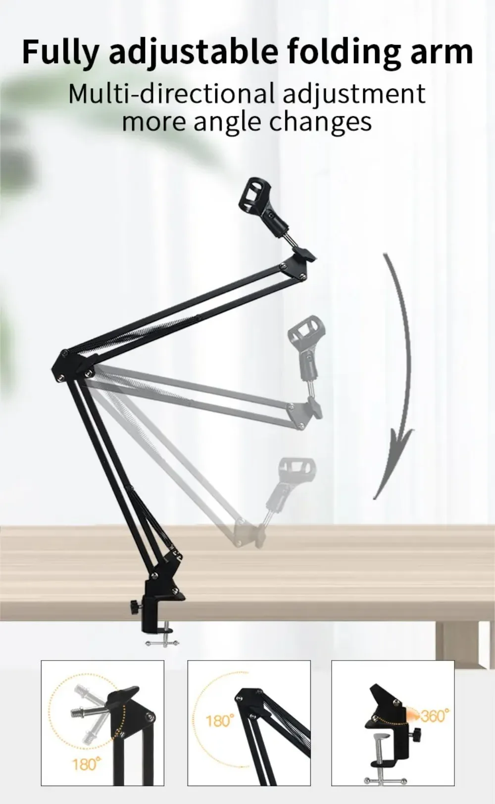 Professional Flexible Desktop Microphone Hanging Adjustable Boom Scissor Arm Stand for Podcast Streaming Youtube