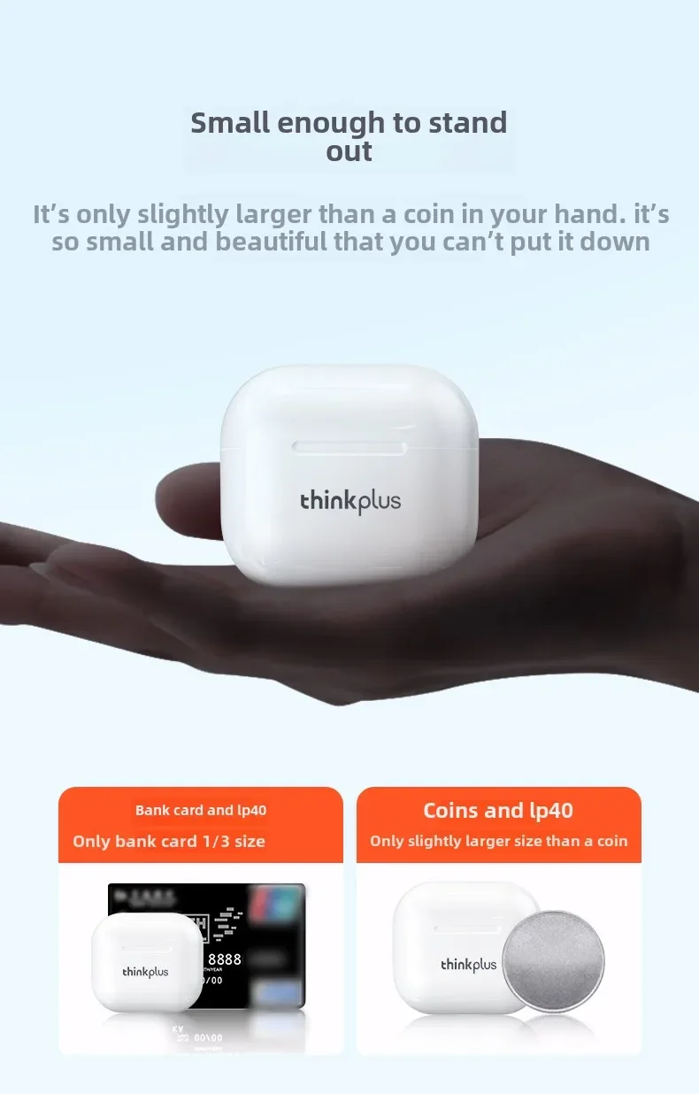 Lenovo Thinkplus LP40 Bluetooth Earphones Wireless Headset for Mobile Phone Music Gaming Earbuds Original Choice