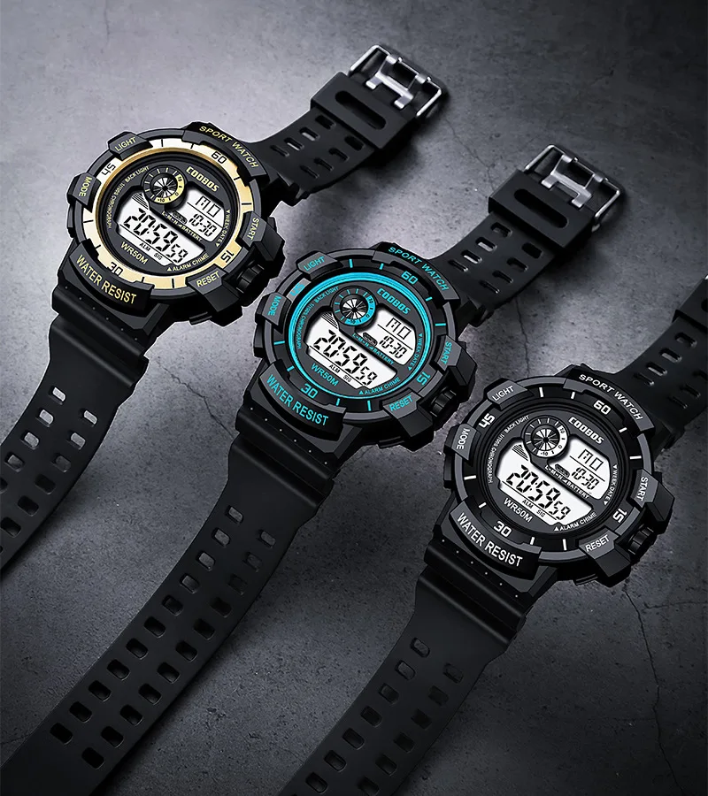 COOBOS Digital Watch Men Waterproof Electronic LED Watches Luminous Alarm Clock Sports Man Militray Clock Gift reloj hombre