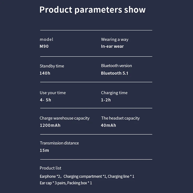 M90 Wireless Headphones TWS Bluetooth Touch Control Earphones Sport Earbuds Hifi Stereo Gaming Headset With Mic For smartphone