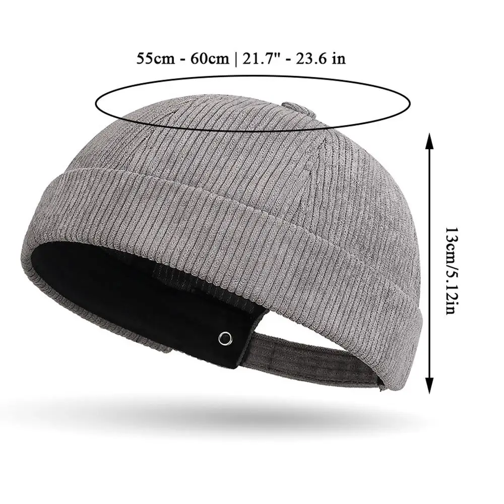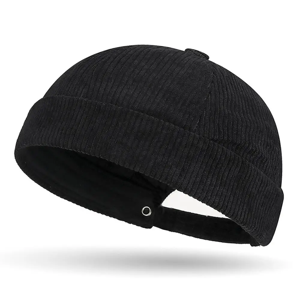 Outdoor Docker Cap Men Women Dome Melon Cap Solid Color Striped Landlord Hat Corduroy Brimless Caps Adjustable Dome Hat Casual