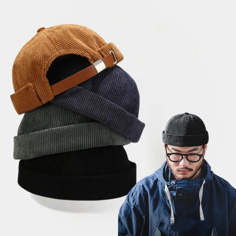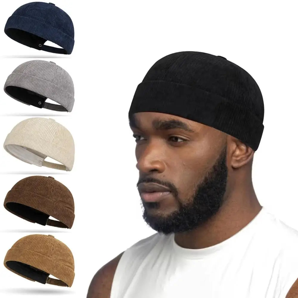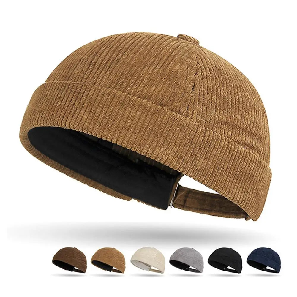 New Corduroy Brimless Cap for Men Women Adjustable Landlord Hat Retro Beanie Docker Caps unisex Hip Hop Hats Streetwear Dome Hat