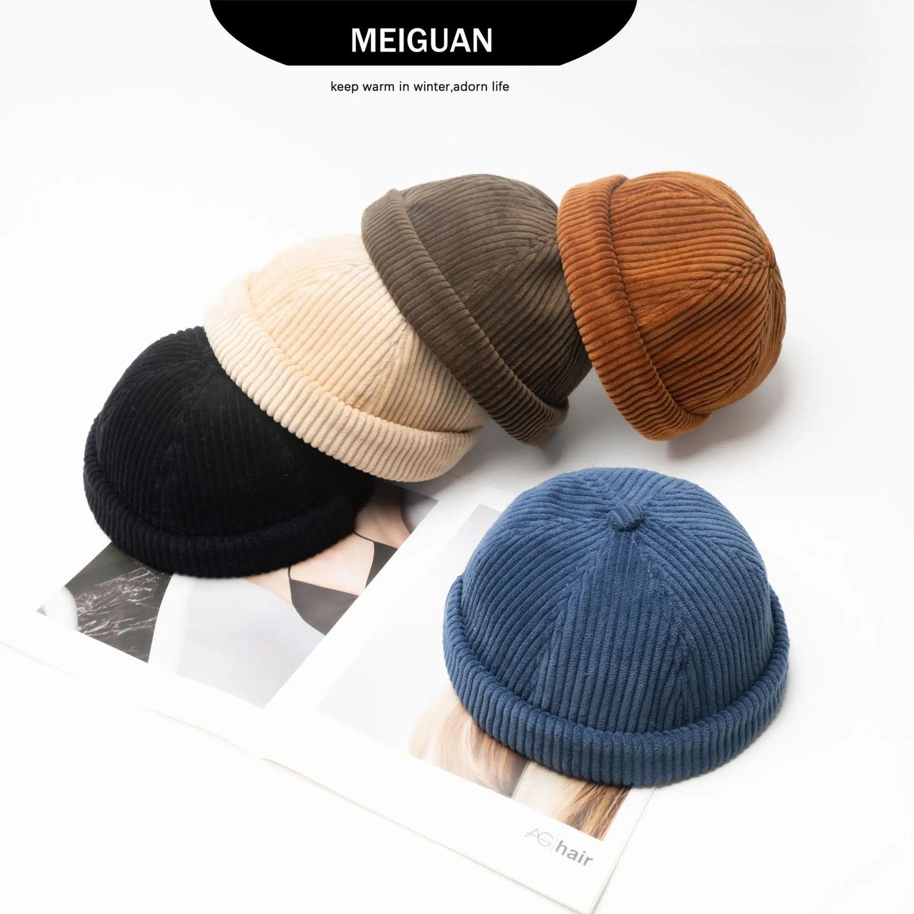 Item Type16: Corduroy Solid Color Brimless Caps